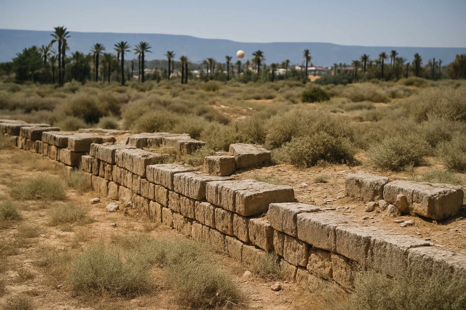 It is situated in the east of AlKhoms city on the bank of Wadi Lebda, which is known for its fertility. According to a research done by ( Pennsylvania university) mission in 1961. Leptis Magna was founded in the 6 th century B.C